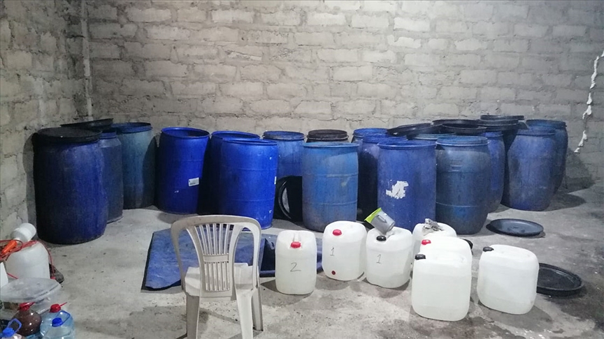 Söz konusu adreslerde, 9 bin 440 litre sahte içki, 75 litre içki yapımında kullanılan etil alkol, 2 litre içki aroması ve alkolmetre ele geçirildi.