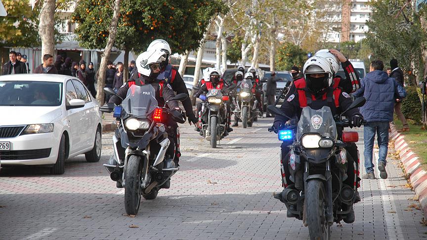 Adana'nın Ceyhan ilçesinde yasa dışı gösterilerin düzenlendiği mahallelerde bin polisin katılımıyla "huzur" uygulaması yapıldı.