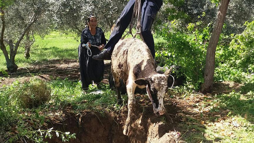 Foseptik çukurundan çıkartılan inek, sahibine teslim edildi.