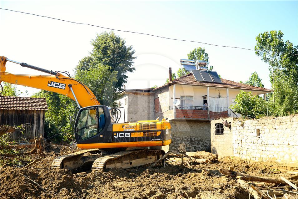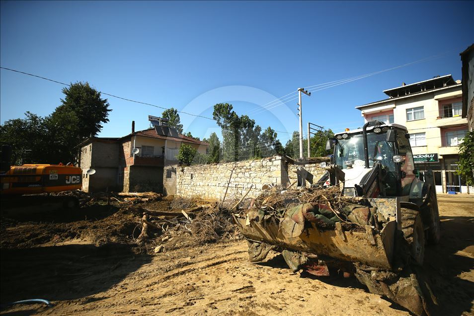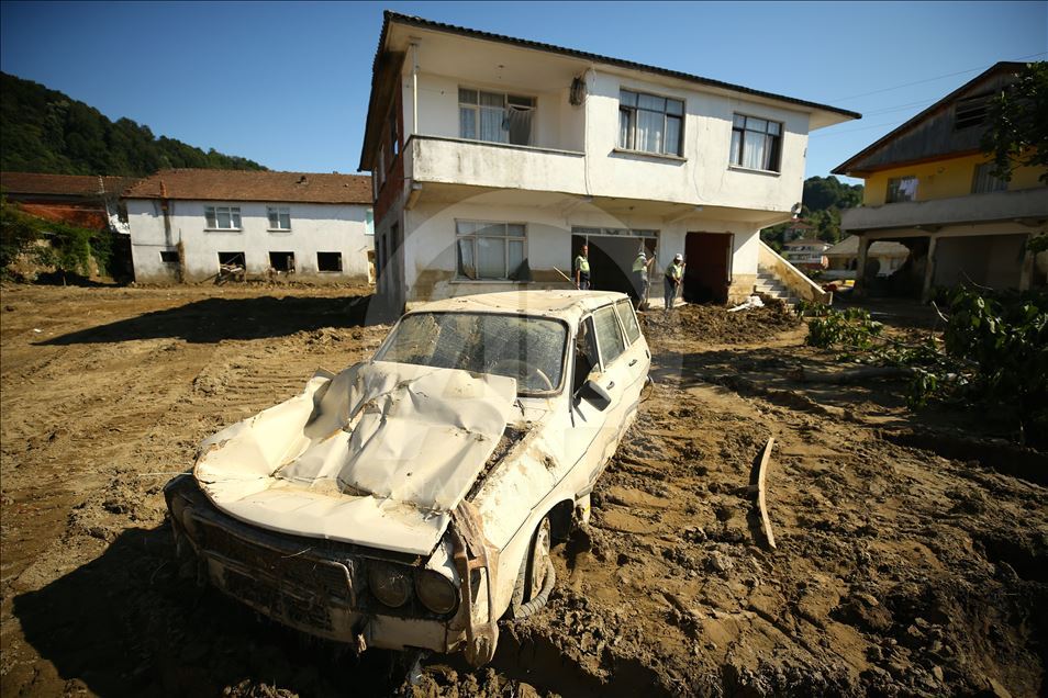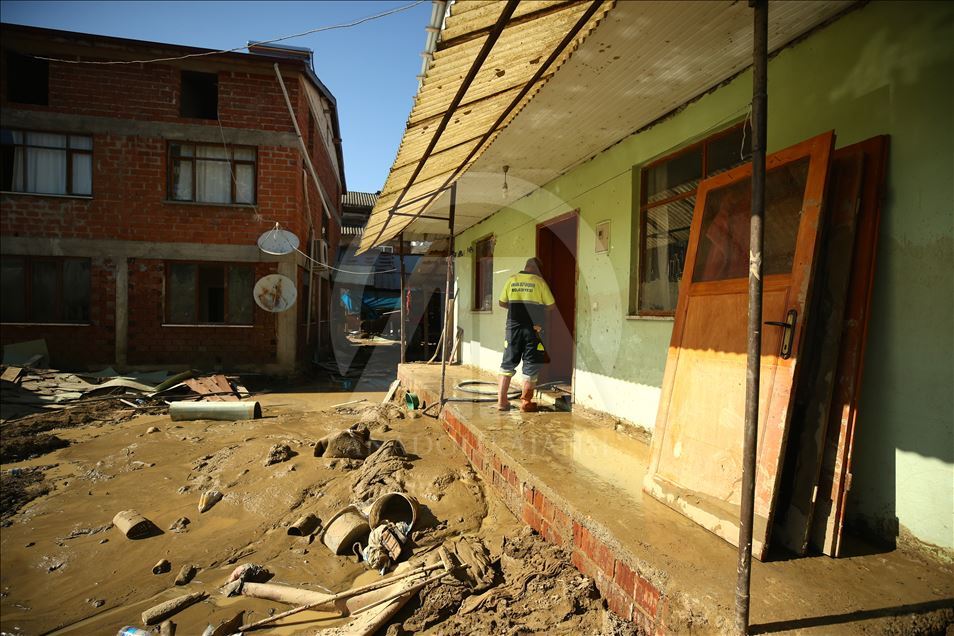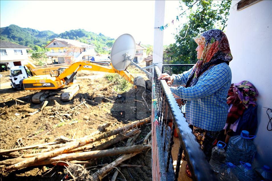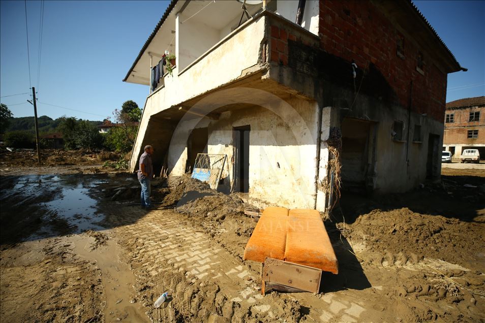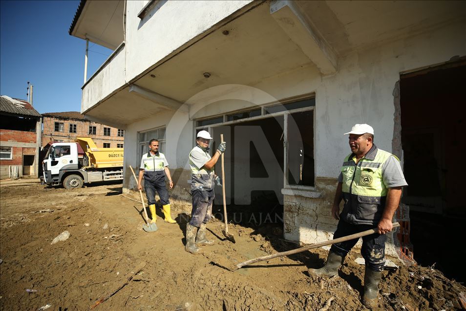 Düzce'de meydana gelen su baskını ve toprak kaymasının ardından bölgedeki zarar gün yüzüne çıkmaya başladı. Bölgede yardıma gelen bir çok belediye ve Valilik ekipleri, vatandaşların yardımına yetişiyor. Köy içerisinde çamur dolan evler temizlenmeye çalışılıyor. ( Ömer Ürer - Anadolu Ajansı )