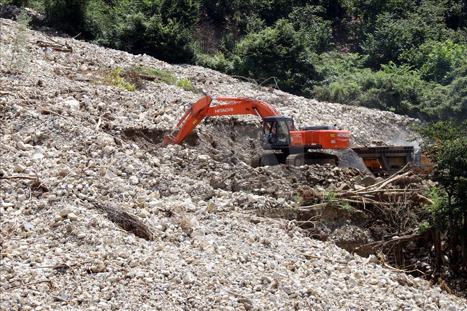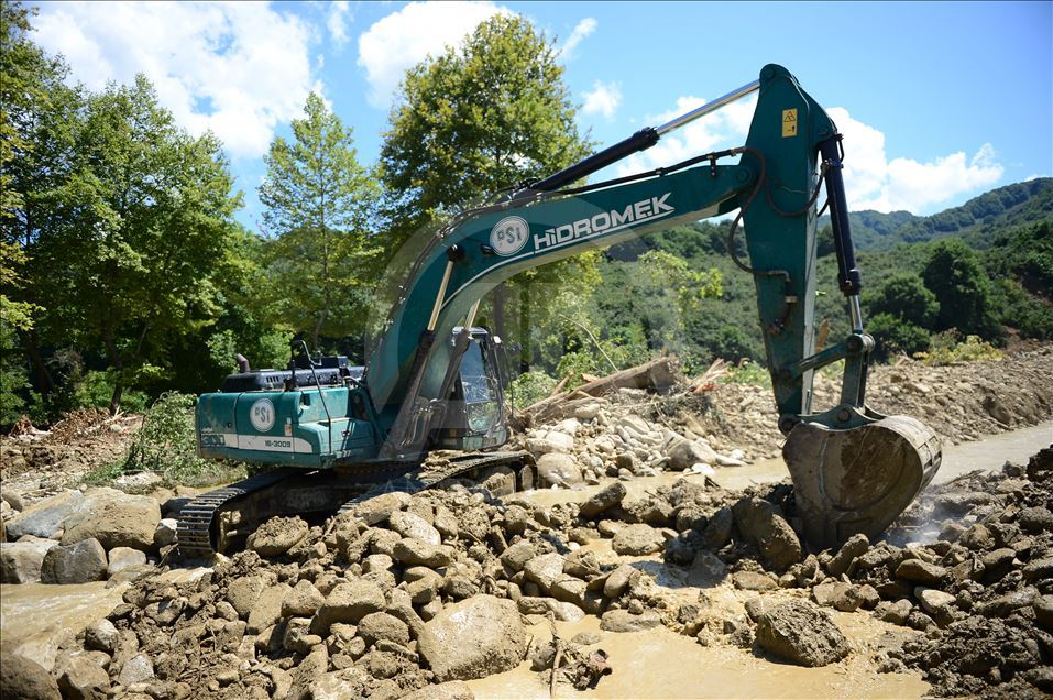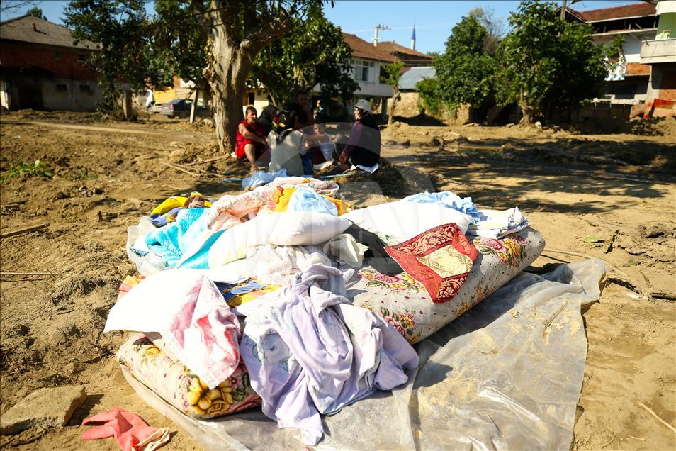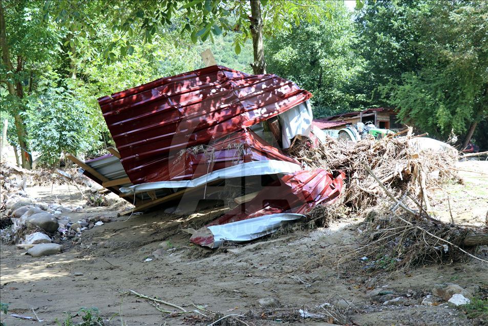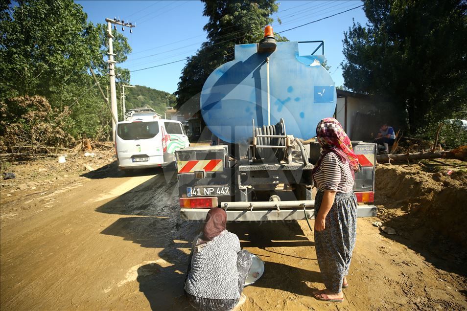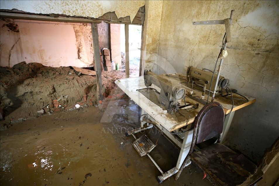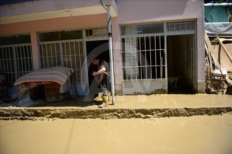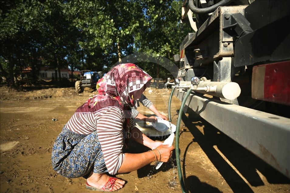 Düzce'de meydana gelen su baskını ve toprak kaymasının ardından bölgedeki zarar gün yüzüne çıkmaya başladı. Bölgede yardıma gelen bir çok belediye ve Valilik ekipleri, vatandaşların yardımına yetişiyor. Köy içerisinde çamur dolan evler temizlenmeye çalışılıyor. ( Ömer Ürer - Anadolu Ajansı )