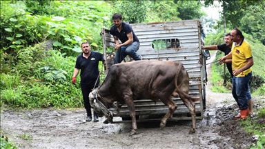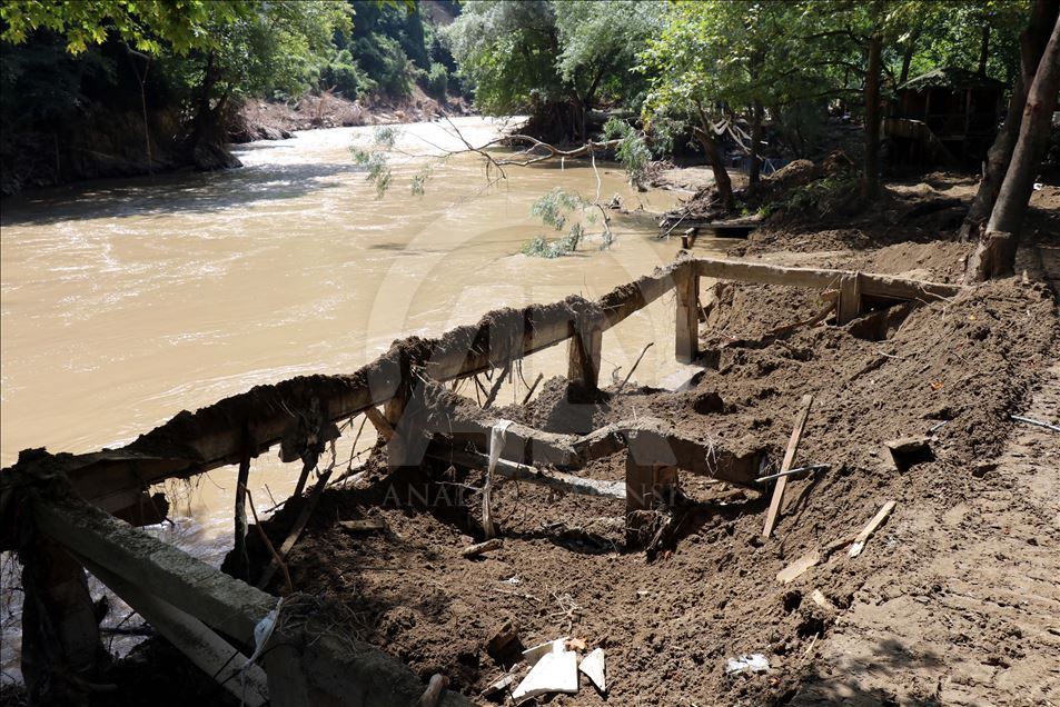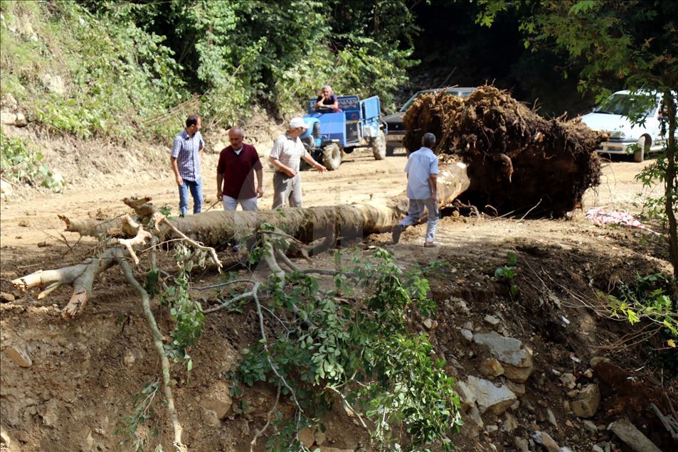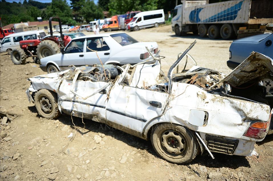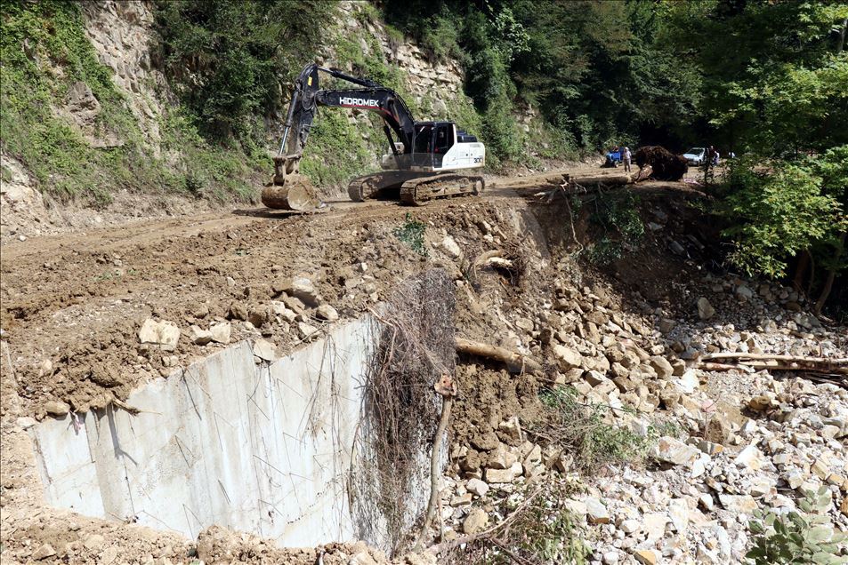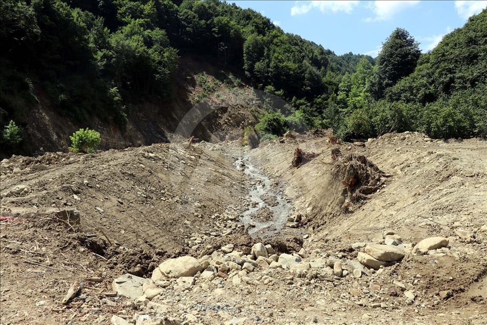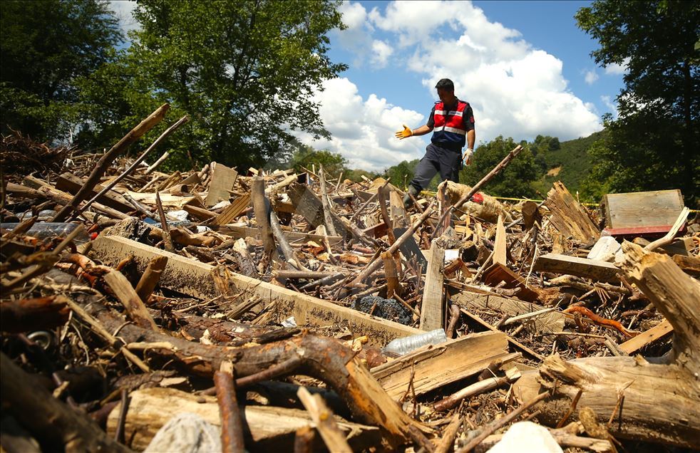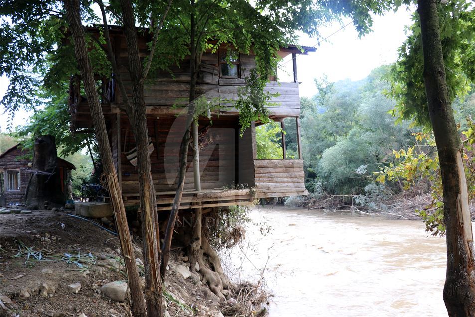 Düzce'de meydana gelen su baskını ve toprak kaymasının ardından bölgedeki zarar gün yüzüne çıkmaya başladı. Bölgede yardıma gelen bir çok belediye ve Valilik ekipleri, vatandaşların yardımına yetişiyor. Köy içerisinde çamur dolan evler temizlenmeye çalışılıyor. ( Ömer Ürer - Anadolu Ajansı )