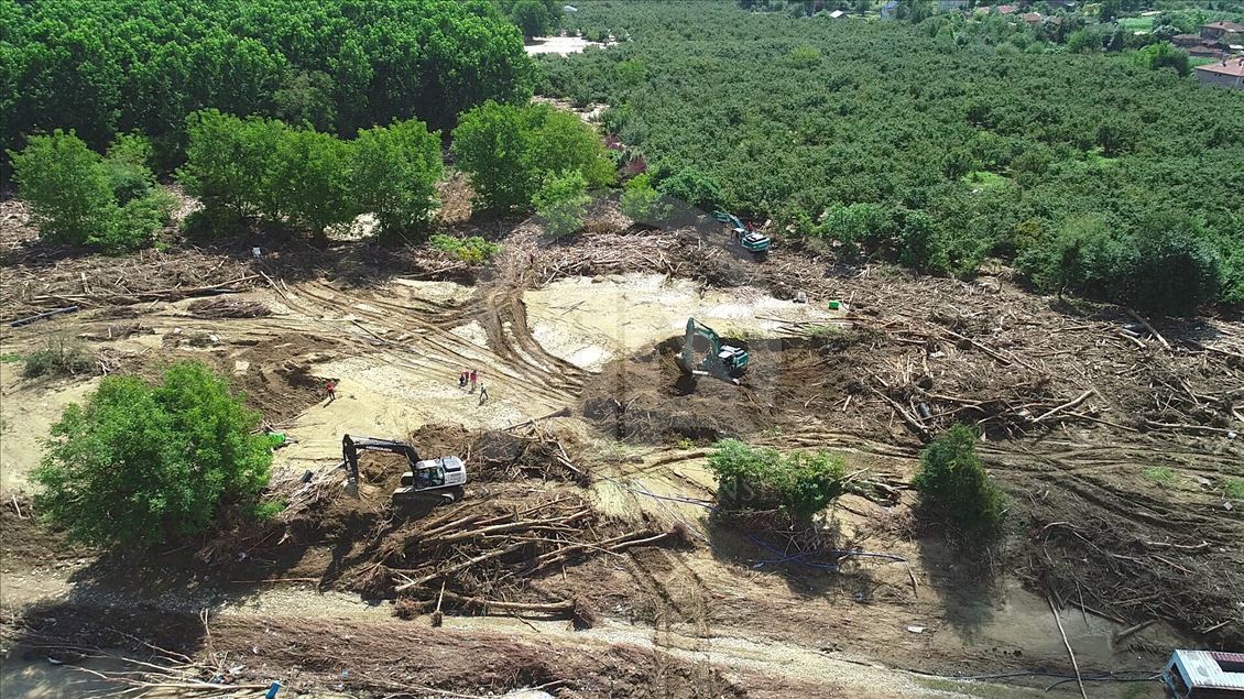 Çalışma alanının zor bir bölge olduğunu vurgulayan Güllüoğlu, "Melen Çayı'nın daha önce 15-20 metre genişliğinde akan kollarının belki yüzlerce metreye varan yerleri var. Etkili bir afet var karşımızda. Herkese geçmiş olsun dileklerimi iletiyorum." dedi.