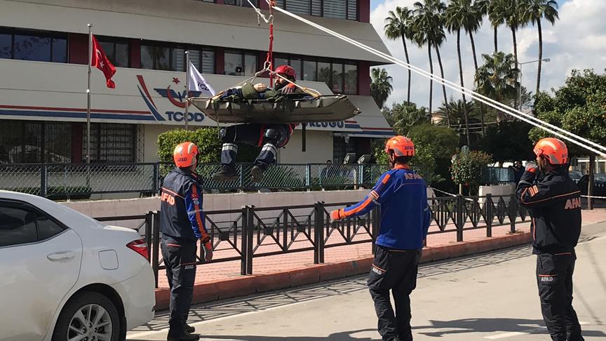 AFAD personelinin halatla yaralı tahliyesi tatbikatı izleyenlerden alkış aldı.
