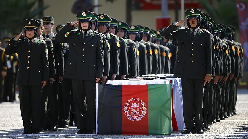 Afganistan Milli Marşı ve İstiklal Marşı'nın okunduğu törende 109 kadın subay ve astsubay adayı, Afganistan Ulusal Ordusunun usullerine göre üzerlerine Kur'an-ı Kerim ve silahlar konulan masalarda ant içti.
