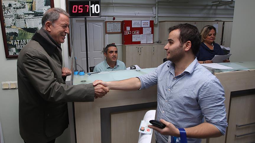 Ziyareti dolayısıyla işlemlerin aksamaması uyarısında bulunan Akar'a, başvuru sahipleri işlemlerin hızlı gerçekleştirildiğini, bekleme sürelerinin çok uzun olmadığını belirtti. Bazı yükümlüler ise askerlik şubelerinin tatil günleri ve gece de açık olmasından duydukları memnuniyeti dile getirdi.