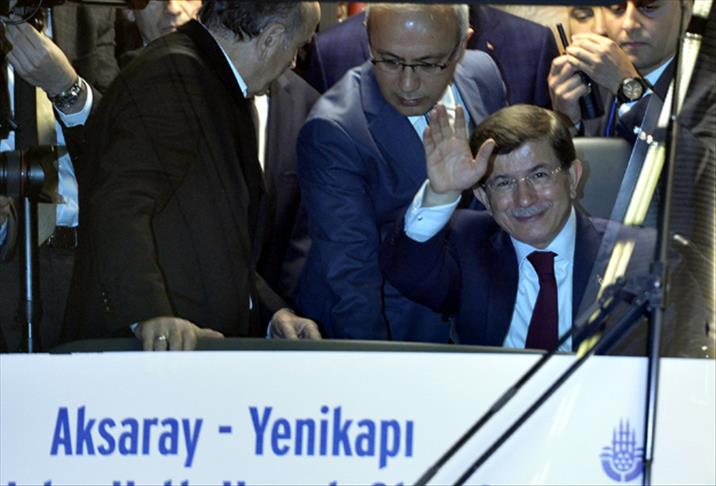 Davutoğlu, daha sonra Aksaray'da metronun vatman koltuğuna geçti. Buradan basın mensuplarına el sallayan Davutoğlu, Yenikapı'ya kadar metroyu kullandı.