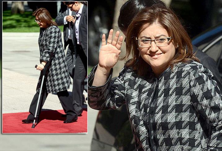Geçirdiği ameliyatın ardından ilk kez Bakanlar Kurulu toplantısına katılan Aile ve Sosyal Politikalar Bakanı Fatma Şahin, Başbakanlık Merkez Bina'ya koltuk değnekleriyle geldi.