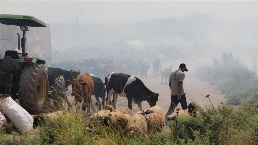 Hatay'ın Kırıkhan ilçesinde, otladıkları tarlada çıkan anız yangını nedeniyle alevler arasında kalan çok sayıda küçük ve büyükbaş hayvan, çobanların özverili çalışmasıyla bulundukları yerden çıkarıldı.
