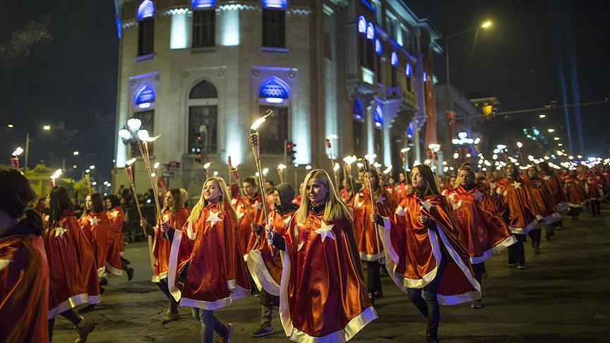 Başkent'te, 29 Ekim Cumhuriyet Bayramı dolayısıyla Ulus Meydanı'ndan 15 Temmuz Kızılay Milli İrade Meydanı'na kadar Türk Silahlı Kuvvetleri (TSK) Mehteran Birliğinin seslendirdiği marşlar eşliğinde "Cumhuriyet Bayramı Fener Alayı" yürüyüşü gerçekleştirildi.