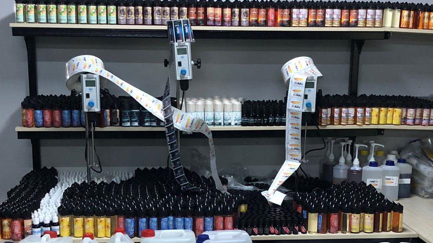 Ekiplerce belirlenen adrese düzenlenen operasyonda, 17 bin 160 şişe kaçak elektronik sigara likidi, 5 ton 960 kilo 800 gram elektronik sigara likidi üretiminde kullanılan madde ile 27 bin 130 boş şişe, 7 kazan, bir etiket baskı makinesi, 3 karıştırıcı, 8 mikser ucu, 2 mikser, 3 şişe doldurma makinesi ve kompresör ele geçirildi.