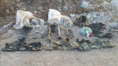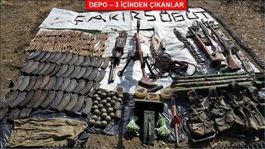 Arama tarama çalışmasında bir biksi ve 287 mermi, bir kalaşnikof ve 120 mermi, 2 el bombası, 4 fünye, 2 patlatma düzeneği ile 3 poşet patlayıcı olduğu değerlendirilen mühimmat bulunduğu kaydedildi.