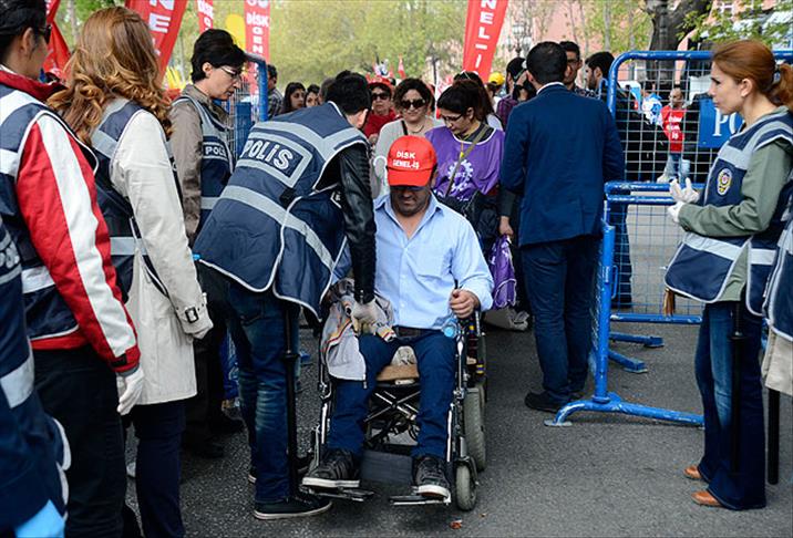 Tarihi tren garının önünde toplandıktan sonra kortej oluşturarak, slogan ve şarkılar eşliğinde yürüyen gruplar, Sıhhiye'deki Ankara Adliyesi önüne ulaştıktan sonra, 3 kontrol noktasında yapılan üst aramasıyla miting alanına girdi. Bazı grupların üst araması yaptırmak istememesi üzerine polis, çoğunluğu gençlerden oluşan grupların kontrollü olarak geçişlerine izin verdi.