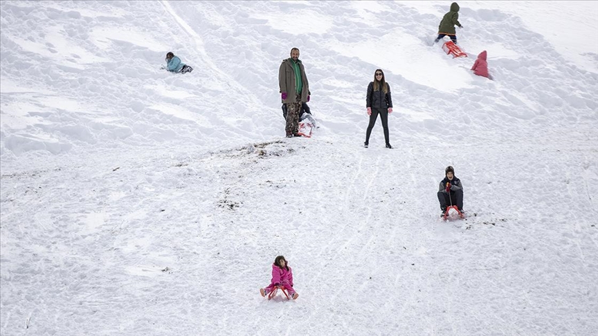 Bazı vatandaşların da plastik leğenlerle kayması renkli görüntüler oluşturdu.