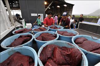 Vinç yardımıyla kamyonete yüklenen balina, incelenmek üzere Akdeniz Üniversitesine götürüldü.