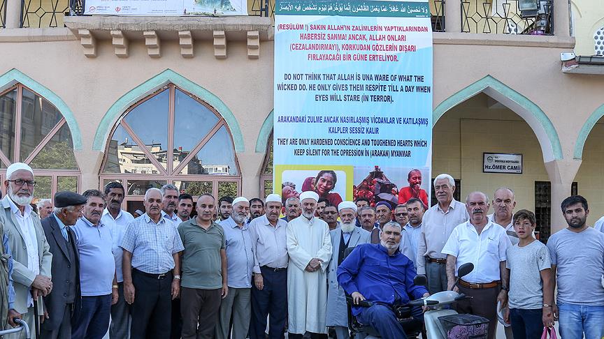 İkindi namazı sonrası Hazreti Ömer Camisi'nin avlusunda toplanan vatandaşlar, Arakanlı Müslümanlara yönelik şiddet ve katliamları kınayarak, burada yaşamını yitirenler için gıyabi cenaze namazı kıldı.