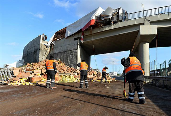 Viyadüğün ucunda asılı kalan tırda yüklü olan 2 bin koli çay yol saçıldı. Çarpmanın etkisiyle viyadükten kopan korkuluklar da çevre yoluna paralel yan yoldan geçen 34 EOF 61 plakalı Musa Erdoğan yönetimindeki aracın üstüne düştü. Edinilen bilgilere göre, tır şoförü ve araç şoförü Erdoğan'ın hafif yaralı olduğu ve hastanede tedavi altına alındıkları öğrenildi.