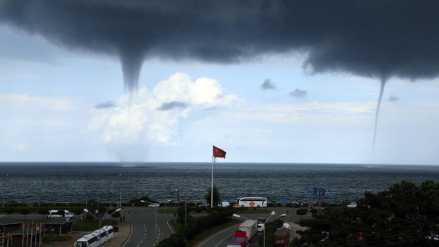 Artvin'in Arhavi ilçesinde deniz üzerinde oluşan iki hortum, yaklaşık 10 dakika etkili oldu.