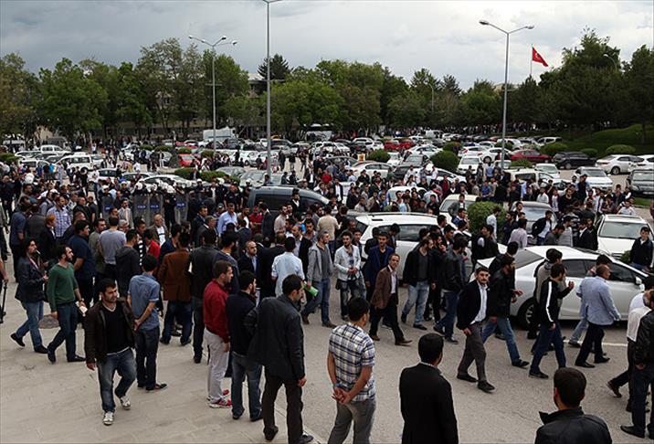 Binadan çıkartıldıktan sonra fakülte bahçesinde sloganlar atıp tekbirler getiren grup, polisin müdahalesiyle dağıldı.