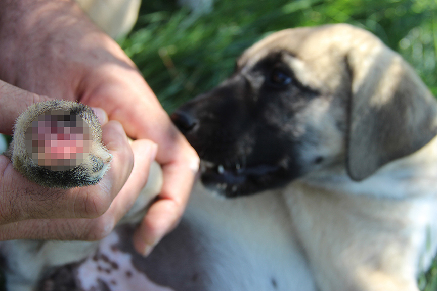 Ayağı ve patisi kesilmiş iki köpek yavrusu bulundu