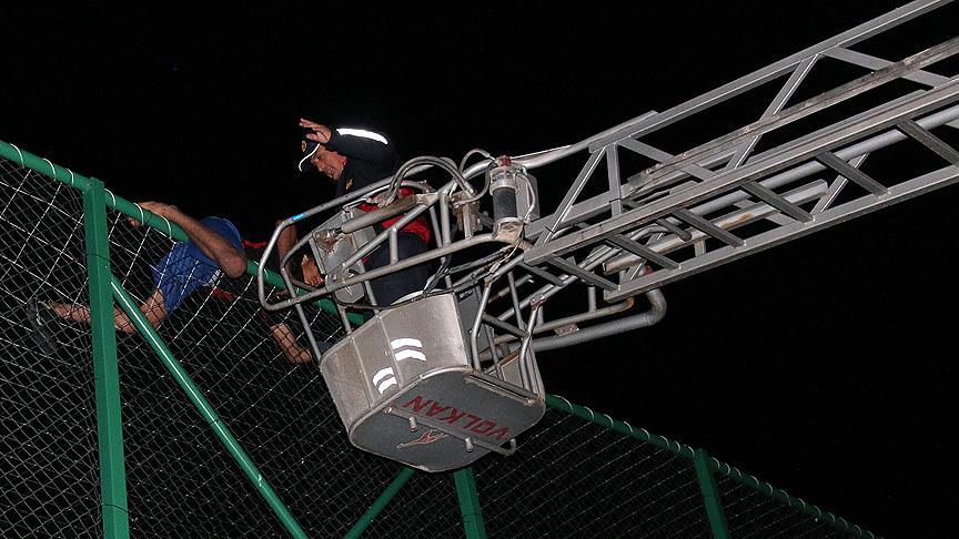 Yılmaz, arkadaşları halı sahadan ayrıldıktan sonra ayakkabıyı almak için sahayı çevreleyen demir boruların üstüne tırmandı.