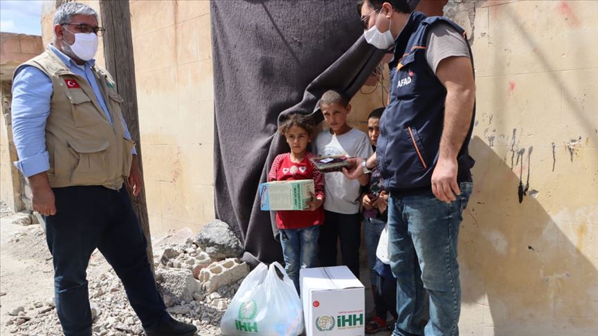Başta Türk Kızılay olmak üzere İHH, TMO ve sivil toplum kuruluşları aracılığıyla gerçekleştirilen yardım faaliyetleri kapsamında iki ilçede 100 ton un, 715 gıda kolisi, 500 paket ekmek, 50 hijyen paketi ile hurma, çocuk bezi, süt ve mama dağıtıldı.