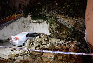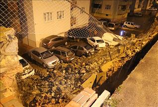 Alınan bilgiye göre, Başakşehir Mahallesi Preveze Sokak'ta bulunan bir sitenin istinat duvarı, saat 17.45 sıralarında yola doğru çöktü. Bu sırada yolda seyir halinde olan bir minibüs göçük altında kaldı.