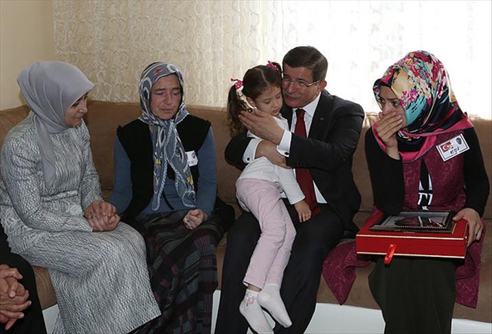 Eşi Sare Davutoğlu ile Sakarya'nın ailesinin yaşadığı Yeşilbayır Mahallesi'ndeki evine gelen Başbakan Davutoğlu, şehit ailesinin yanında yaklaşık 25 dakika kaldı.