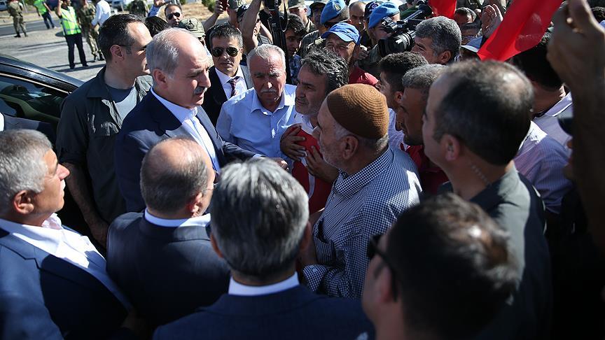 Bu sırada "Dünyaya yardım ediyorsunuz, Allah sizden razı olsun, bizim sıkıntılarımızı da giderin, Allah devletimize zeval vermesin." diyen bir vatandaş, Başbakan Yardımcısı Kurtulmuş'a sarıldı.