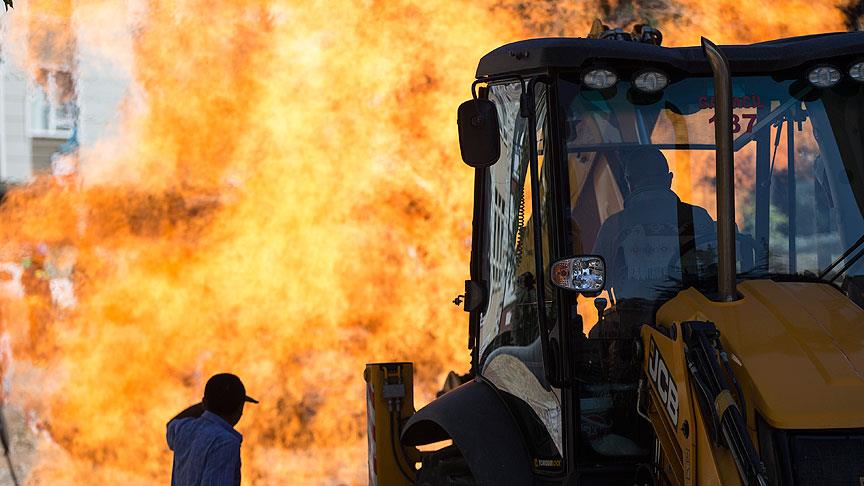 Doğalgaz ekipleri, bazı evlerin gazını keserken itfaiye ekipleri de alevlerin çevredeki binalara sıçramaması için apartmanların dış cephesine su sıktı.