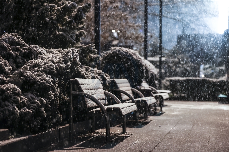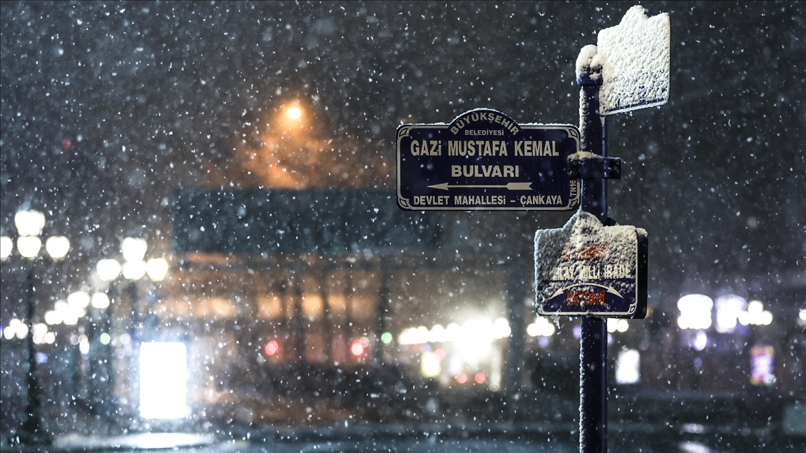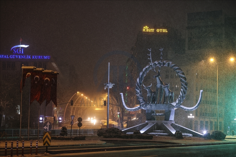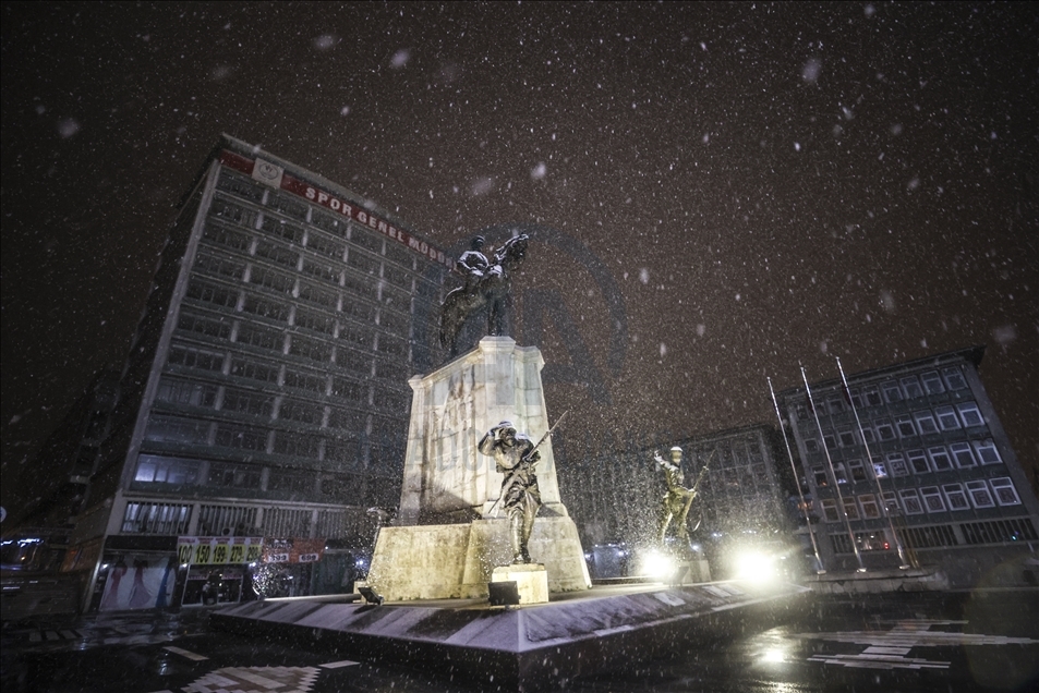 Ankara'da gece saatlerinde kar yağışı etkili oldu. ( Esra Hacioğlu - Anadolu Ajansı )