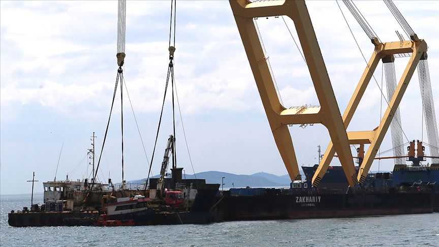 Edinilen bilgiye göre, yaklaşık 3 bin grostonluk batık gemi için bir süre önce getirilen dalgıçlar, su altında yaptıkları kaynak işlemiyle gemiyi parçalara ayırdı. "Zakharıy" adlı yüzen vince bağlanan parçalar sudan çıkarılarak bir römorkun üzerine yerleştirildi.
