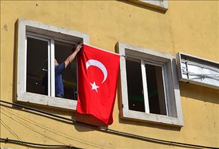 Batman'da PTT girişindeki asılı Türk bayrağı, sahur vakti vatandaşlarca yerde bulundu.