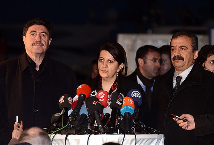 BDP Grup Başkanvekili Pervin Buldan, burada gazetecilere yaptığı açıklamada, şunları kaydetti: ''Öncelikle hepinize teşekkür ediyoruz. Sayın Öcalan'ın çok kısa bir açıklamasını sizlerle paylaşmak istiyoruz; Önce basına emeklerine duyduğum saygıdan dolayı selamlarımı iletiyorum. Bu açıklamayı da bu saygı çerçevesinde yapıyor Sayın Öcalan. Bu görüşme, tarihi bir adımdır, tarihi bir süreç yaşıyoruz. Bütün taraflar, bu süreçte çok dikkatli ve duyarlı olmalıdır. Devletin elinde tutsaklar var. PKK'nin elinde de tutsaklar var. PKK, elindeki tutsaklara iyi davranmalı. Umarım en kısa zamanda ailelerine kavuşurlar.''
