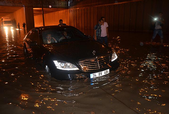 Yağmurun devam ettiği sırada makam aracıyla kent merkezindeki alt geçitten geçen Karabük Belediye Başkanı Rafet Vergili, su dolan alt geçitte mahsur kaldı.