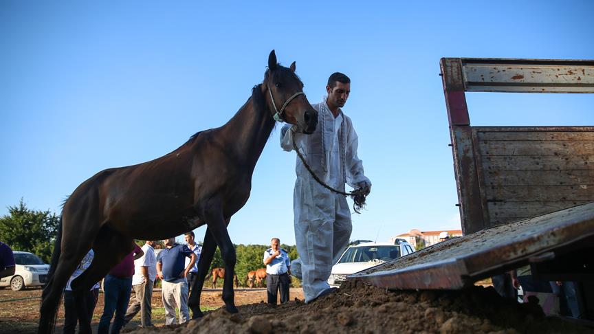 Kamyonlara yüklenen atlar, iki ay önce giriş yaptıkları Kocaeli'ne götürülecek.