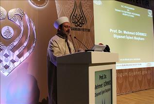 Diyanet İşleri Başkanı Prof. Dr. Mehmet Görmez, "Bugün bizler, İslâm coğrafyasını yeniden barış ve kardeşlik yurdu haline getirmek için çalışmalıyız. Bizler, bir damla insan kanının milyonlarca varil petrolden çok daha değerli olduğunu bütün dünyaya anlatabilmeliyiz" ifadelerini kullandı.