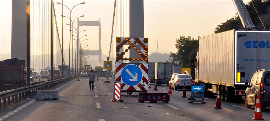 Fatih Sultan Mehmet (FSM) Köprüsü'nde birinci faz asfaltlama çalışmaları nedeniyle gece saat 00.00'dan itibaren güney taşıma yolundaki bir şeridin daha trafiğe kapatılması, akşam saatlerinde köprü girişlerinde araç kuyruklarının daha da uzamasına neden oldu. Trafikte uzun süre geçiren sürücüler, yüksek hava sıcaklığının da etkisiyle büyük sıkıntı yaşadı. Bazı araç sahipleri yetkililerden çalışmaların hızlandırılmasını talep ederken, her şeye rağmen İstanbul'da yaşamanın güzelliğini vurgulayanlar da oldu. Köprü trafiğinde uzun zaman geçiren sürücülerin ortak dileği, iftar saatinde eve yetişmek oldu. Bugün daha fazla vatandaşa hizmet veren mobil büfelerde ise, iftara yetişemeyecekler için iftariyelikler hazır edildi. FSM Köprüsü'nde kapalı şerit sayısının 3'e çıkmasıyla birlikte akşamları Avrupa'dan Anadolu'ya geçişte 3 şerit, Anadolu'dan Avrupa'ya geçişte ise 2 şerit hizmet veriyor. Kapatılan 3. şerit, 27 Temmuz'da saat 00.00'dan itibaren tekrar trafiğe açılacak. Aynı gün kuzey taşıma yolunun sol iki şeridi trafiğe kapatılarak çalışmalar sürdürülecek.