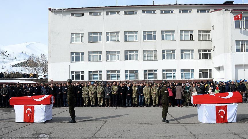 Bitlis'te terör örgütü PKK'ya yönelik operasyonda şehit olan jandarma uzman çavuşlar Veysel Şirin ile Samet Kaya için tören düzenlendi.