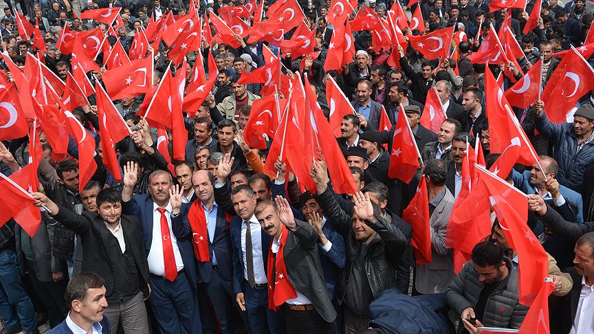 İlçe merkezinde düzenlenen miting, Kur'an-ı Kerim tilaveti ile başladı.