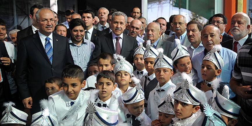 Arınç, Şelale Plaza Restoran'da Manisa Dostlar Eğitim ve Yardımlaşma Derneği tarafından maddi durumu iyi olmayan 76 çocuk için düzenlenen sünnet düğününe katıldı.