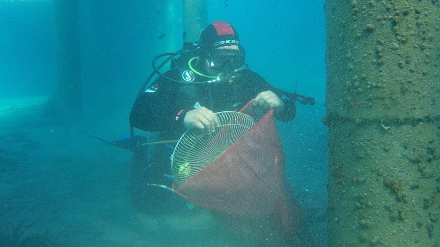 Muğla'nın Bodrum ilçesinde belediye dalgıçları, iki saatte denizden 235 kilogram atık çıkardı.