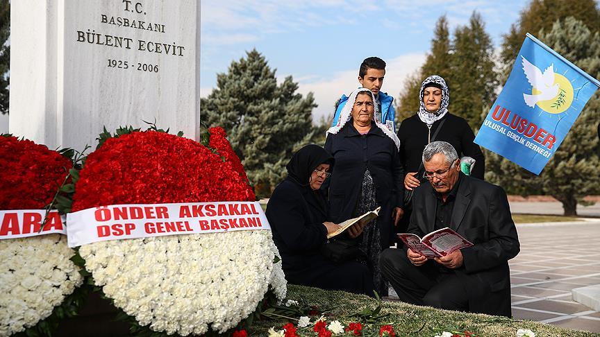 Eski başbakanlardan Bülent Ecevit'in vefatının 10. yılı dolayısıyla Devlet Mezarlığı'nda düzenlenen törene, Demokratik Sol Parti (DSP) Genel Başkanı Önder Aksakal, eski Adalet Bakanı Hikmet Sami Türk, eski DSP Genel Başkanları Masum Türker ve Zeki Sezer, DSP Genel Sekreteri Abbas Deniz ile çok sayıda partili katıldı.