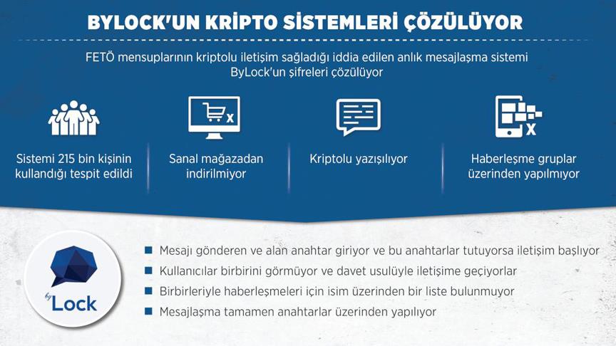 Nebil, "215 bin kişinin kullandığı tespit edilen anlık mesajlaşma sistemi ByLock, tahminlerimize göre sanal mağazadan indirilmiyor. Kriptolu yazışılıyor. Mesajı gönderen ve alan anahtar giriyor ve bu anahtarlar tutuyorsa iletişim başlıyor." dedi.