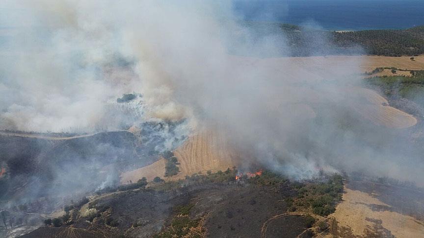 Yangına, Çanakkale ve Keşan'dan gelen helikopterler ve arazözlerle müdahale ediliyor.