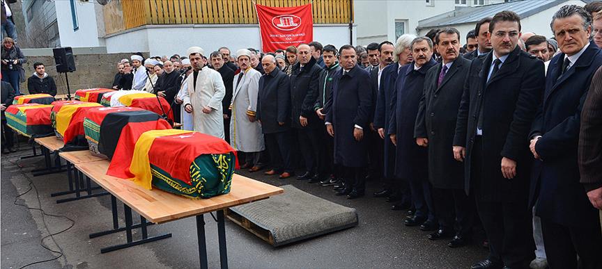 Yangında hayatını kaybedenlerin tabutlarının üzerine Türk ve Alman bayrakları örtüldü.