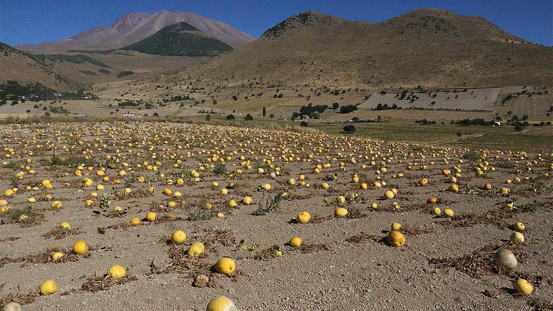 Türkiye'nin kabak çekirdeği ihtiyacının yüzde 35'ini karşılayan Kayseri'de üretilen kabaklar hasat öncesi görselliği ile dikkati çekiyor.