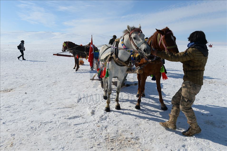 Atlı kızak sahibi Ozan Karataş, AA muhabirine yaptığı açıklamada, atlı kızakların, Çıldır Gölü'nün simgesi haline geldiğini söyledi.