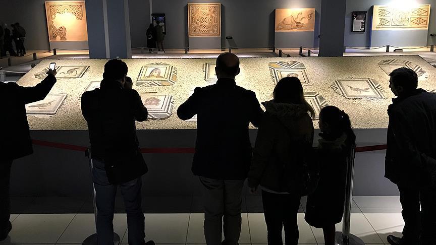 ABD'den Gaziantep'e getirilen "Çingene Kızı" mozaiğinin 12 parçası, sergilendiği Zeugma Mozaik Müzesi'nde ziyaretçiler tarafından yoğun ilgi görüyor.