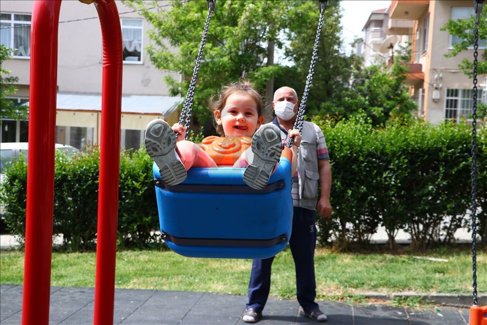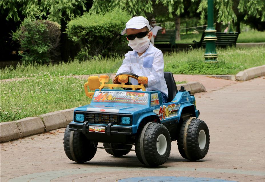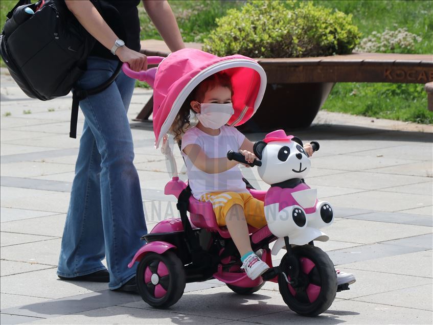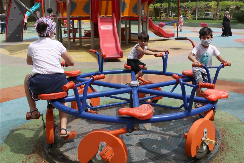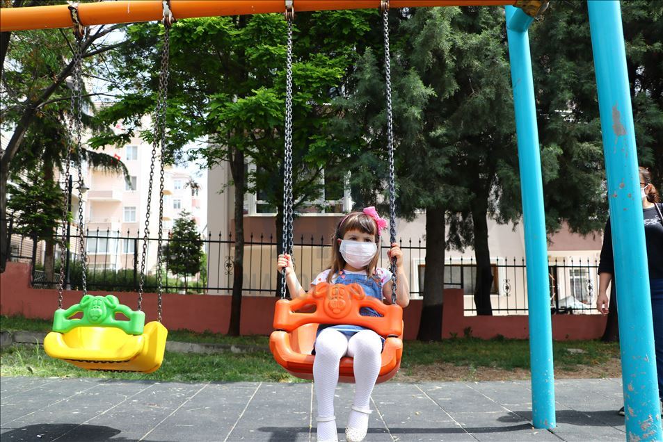Koronavirüs tedbirleri kapsamında çoğunlukla maskeleriyle sokağa çıkan çocuklar, park ve oyun alanlarında eğlendi.